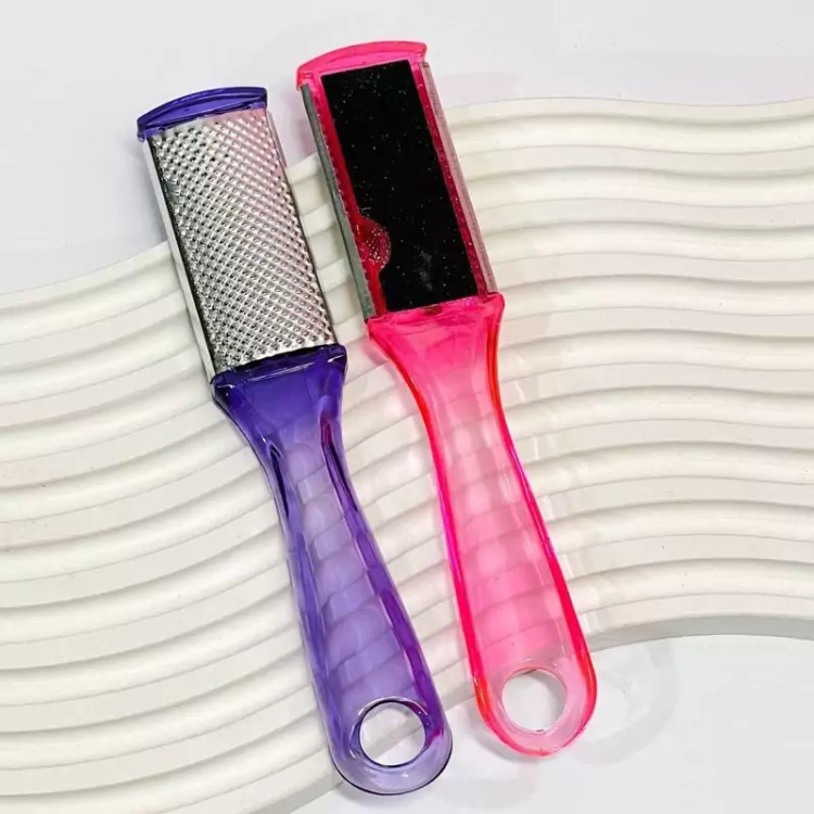 رنده و سوهان پا دو طرفه 🛍️لایه بردار و از بین برنده آلودگی های کف پا صاف و نرم کننده کف پا سفت کننده پوست کف پا دوطرفه (رنده فلزی و سوهان ) دسته پلاستیکی و محکم کیفیت عالیو فوقالعاده 🛍️🙋🏻👇🏻