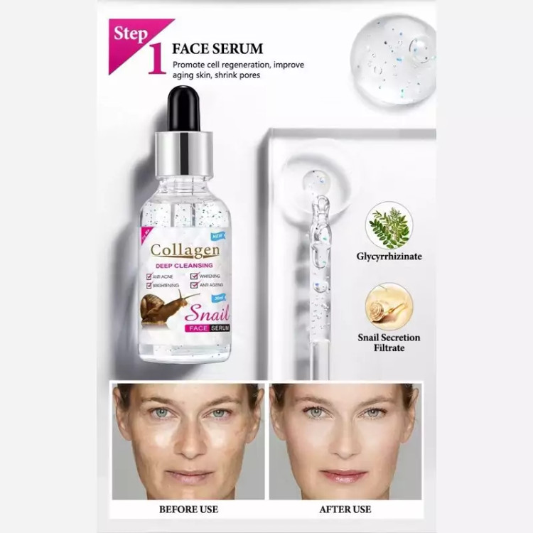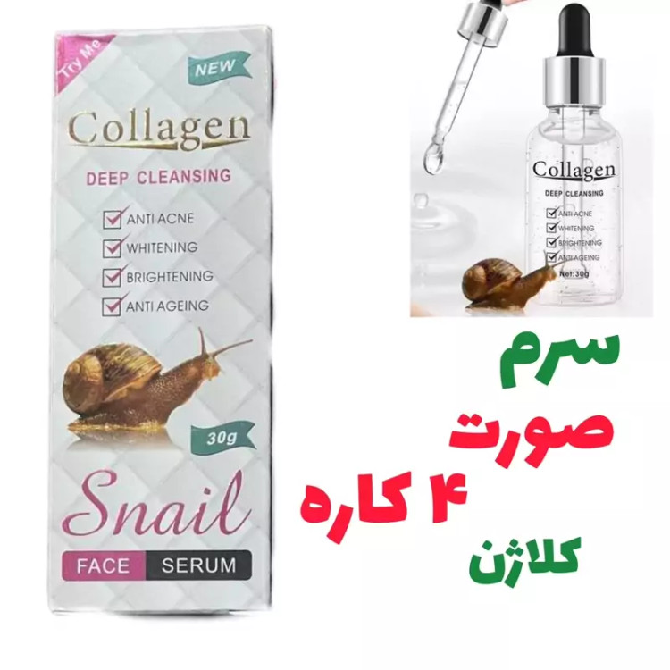 سرم کلاژن چهار کاره حلزون •حاوی توپ های تحریک کننده کلاژن •آبرسان و رطوبت رسان قوی پوست •ضد پیری و سفت کردن پوست •روشن کننده و سفید کننده •ترمیم کننده پوست آسیب دیده حجم : 30ml * این سرم حاوی مواد مؤثر گیاهی جهت محافظت از فاکتورهای رشد سلولی در پوست * ایجاد آرامش در عضلات صورت و جلوگیری از انقباض آن ها با عملکردی مشابه بوتاکس * کاهش تعداد و عمق چروک های پوست با فعالسازی مکانیسم های طبیعی بازسازی پوست * قدرت نفوذپذیری بالا، جهت راهیابی به لایه های داخلی پوست و کاهش عمق و وسعت چروک ها * جوانسازی پوست با بهره گیری از جدیدترین و مؤثرترین پپتیدها جهت ساخت کلاژن و الاستین * حاوی عصاره حلزون جهت افزایش ساخت کلاژن و استحکام پوست * افزایش متابولیسم سلولی و کند کردن روند پیری پوست 🛍️ روش استفاده : * روزی1 الی 2 بار بعد از تمیز کردن پوست صورت و گردن چند قطره از سرم را با کمک نوک انگشت روی پوست این مناطق پخش نمایید و اجازه دهید کاملا جذب پوست گردد. 🛍️🙋🏻👇🏻