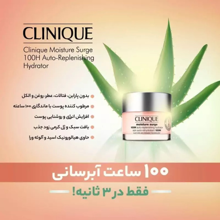 آبرسان مویسچر سرج 100 ساعته کلینیک 125 میل ویژگیهای محصول: • آبرسان و مرطوب کننده بسیار قوی • دارای قدرت آبرسانی 100 ساعته!! • افزایش میزان رطوبت پوست تا 174%!! • دارای بافت ژل کرمی سبک، زودجذب و فاقد چربی • تقویت کننده سد دفاعی پوست • تسکین دهنده و آنتی اکسیدان • محافظت از پوست در برابر کم آبی و دهیدراته شدن • قابل استفاده به عنوان ماسک آبرسان • قابل استفاده به عنوان زیرساز آرایش • مناسب انواع پوست ✅ نحوه مصرف: پس از شستشوی صورت و بعد از استفاده از تونر و تمیز کننده های پوستی اگر احساس کردید پوستتان به یک مرطوب کننده احتیاج دارد از کرم آبرسان کلینیک برای تقویت و شاداب کردن پوستتان استفاده کنید. توصیه میشود حداقل دو بار در روز صبح ها و شب ها استفاده شود. 🛍️🙋🏻👇🏻